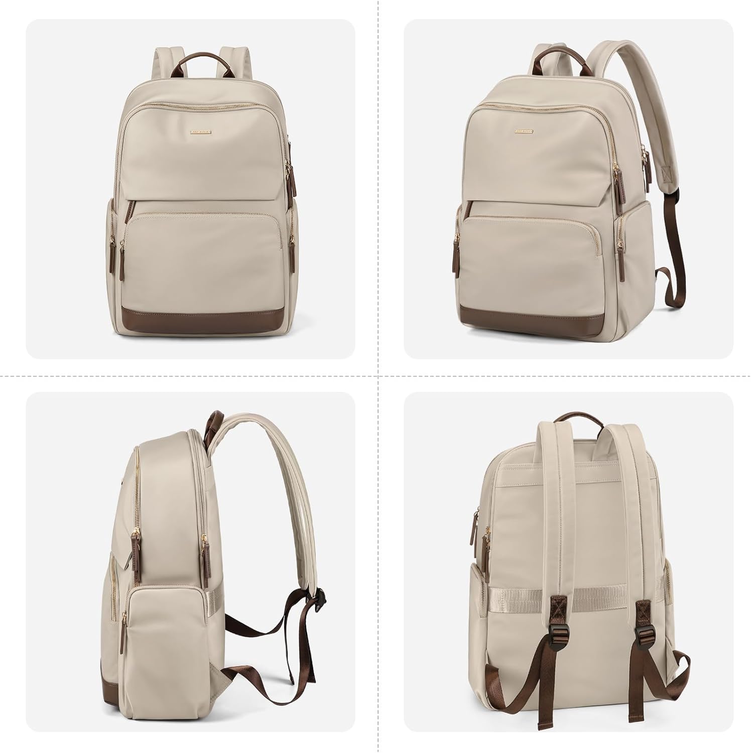 Details: Women Leather Laptop Backpack Purse Casual College Casual Bags Daypack beige color with two main pockets can hold laptop
